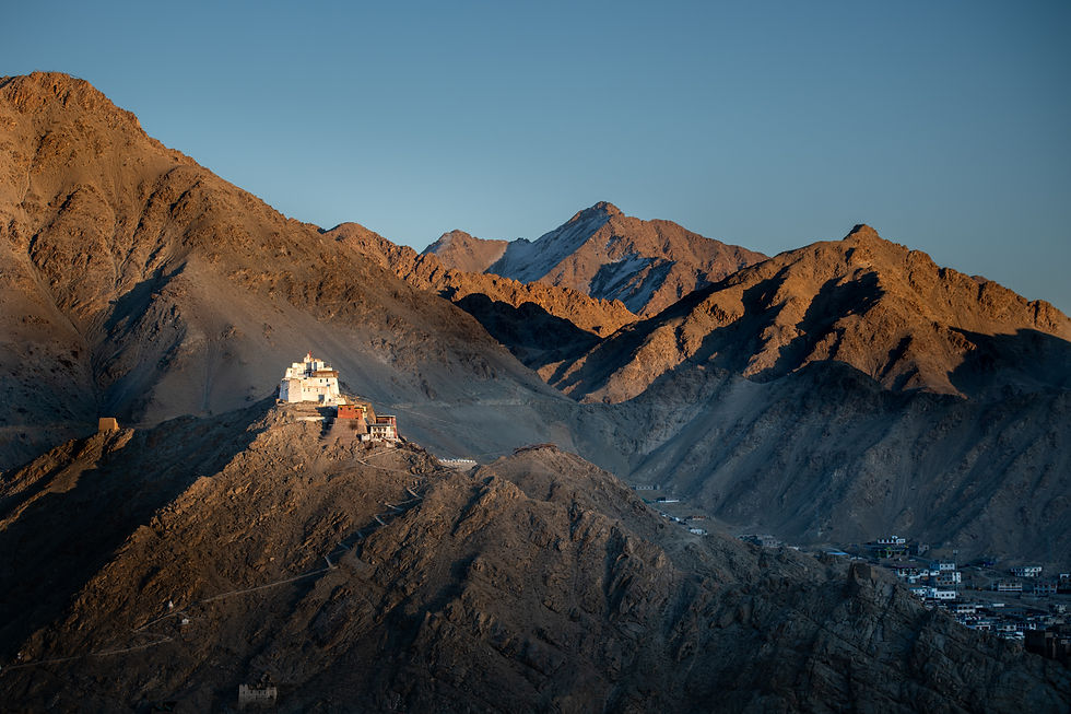 Now I am not going to name the Photography company I travelled with as that would be churlish, but it soon became apparent that "photography" was not the main driver of this group. The leaders of the tour did not shoot with cameras and recommended using Iphones saying "phones have come such a long way" Now this may well be true, but it's not even trying to obtain the best possible image is it? Not once where we in location at dawn to maximise the sunrise, with breakfast taking priority and us only hitting the road at around 9.30am when the good light was long gone. A similar situation also developed in the evening. When in position to shoot the sunset at Shanti Stupa the "leader" decided to move the group to a position nearer to the cars for some unknown reason. An easier departure for dinner? Who knows? I refused and stayed put at Shanti Stupa to photograph the image below. Before the light had even gone, the leader sent a helper to "come and get me" as I was delaying the groups departure for dinner. Its a photography trip and you want to leave while it's still light for dinner? What a joke, and I would never travel with a group like this again. I should really name who they are, but I will refrain.